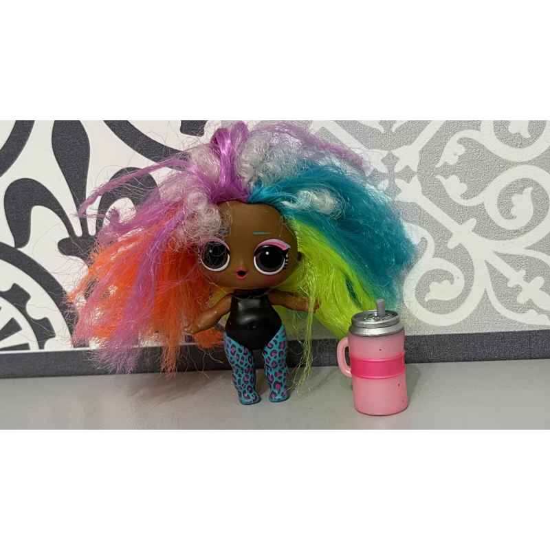poupée lol avec ces cheveux colorés et son biberon en bon état