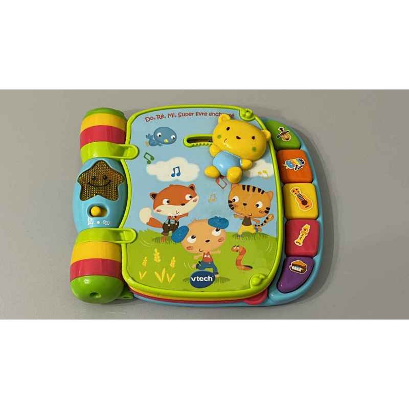 livre électronique do, ré, mi, super livré enchanté vtech parlant et musical avec 6 comptines, 5 boutons colorés pour jouer du piano. Des animaux ou objets en relief à manipuler et une Etoile lumineuse qui clignote au rythme des chansons. En tbe