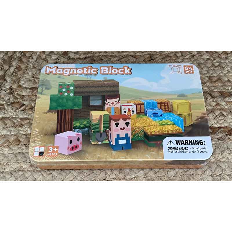 boite de 54 blocs de constructions magnétiques sur le thème de la ferme , neuf