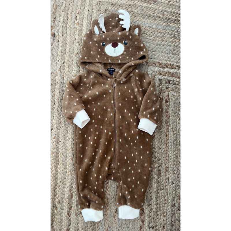 combinaison kiabi marron avec capuche avec motif , toute douce qui s'ouvre sur le devant en tbe en 3 mois