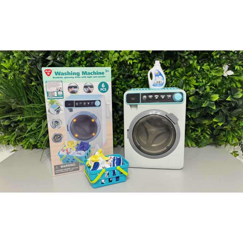 machine à laver électronique pour enfants qui fait de la lumière, son tambour tourne et elle fait des sons très réalistes. Avec une corbeille à linge + vêtements (taille poupée barbie) + 1 bidon de lessive, le tout dans sa boite, neuf