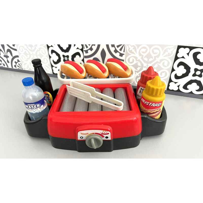 machine à hot dog électronique avec ces accessoires. La machine produit des sons , s'illumine et le plateau produit un mouvement qui fait avancer les petits pains quand on les pose dessus, le tout en tbe