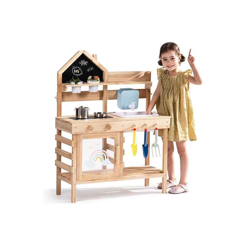 cuisine d'extérieur en bois avec évier, plaque de cuisson , rangements , ardoise et accessoires , dimensions: 100/55/28 cm , neuve dans son carton