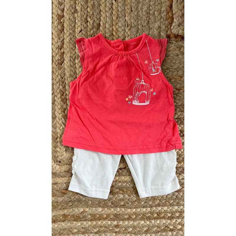 ensemble composé d'un tee shirt bébé rêve couleur rose orangé en tbe + 1 leggins court blanc en bon état en 3 mois