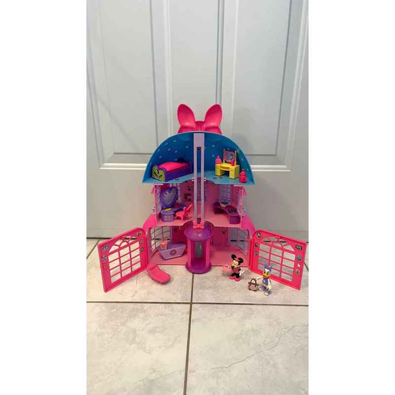 grande maison de minnie avec mobilier et 2 figurines , de 45cm de haut avec ascenseur en bon état