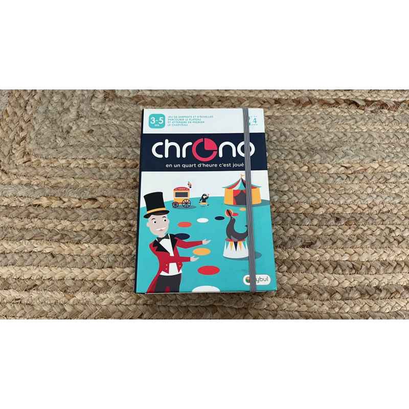 jeu chrono de chez oxybul à partir de 3 ans : jeu de serpents et d'échelles ou il faut parcourir le plateau et atteindre en premier le chapiteau , en bon état et complet juste le dessous du plateau qui se décolle dans un angle mais cela ne gène en rien le jeu , le plateau tient parfaitement à plat