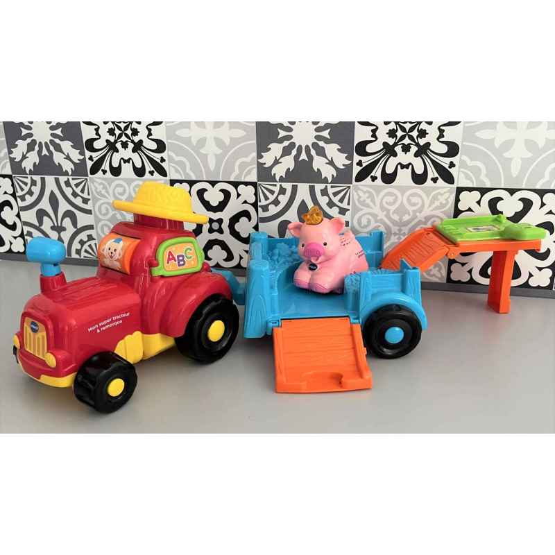 tracteur tut tut animo de vtech avec sa remorque et tire bouchon le cochon glouton en tbe