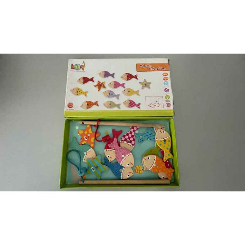 pêche à la ligne en bois magnétique en bon état juste la boite a été rescotchée