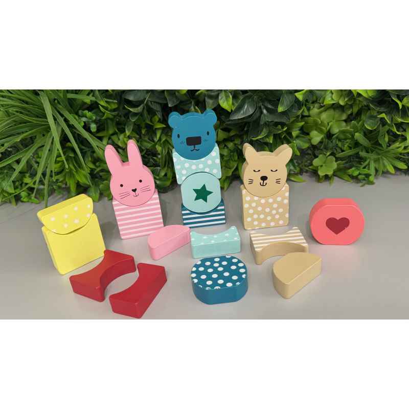 jeu de constructions en bois pour créer différents personnages de 18 pièces en bon état