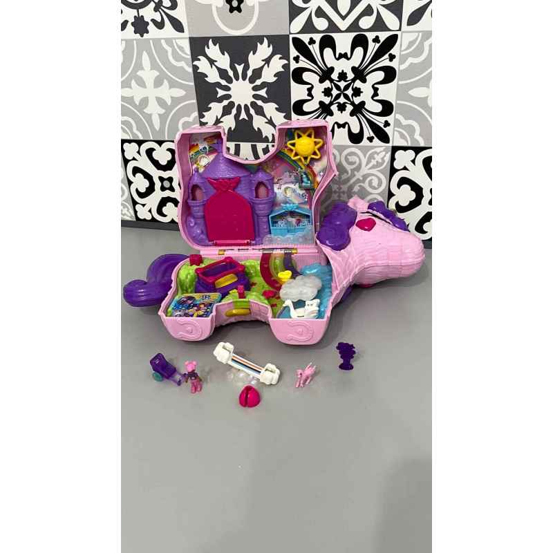 coffret polly pocket licorne en fête refermable et transportable en tbe mais il manque quelques éléments