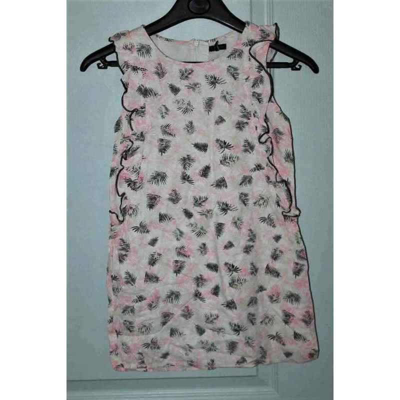 robe ikks blanche avec motifs feuilles roses et noirs en tbe en 8 ans