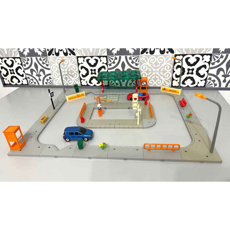 lot majorette majokit avec plaques grises ( pas toutes la même couleur) voitures majorette, personnage et divers éléments de décor. Lot de 55 pièces en bon état juste un pied de l'abri bus ou il manque un pic de fixation )