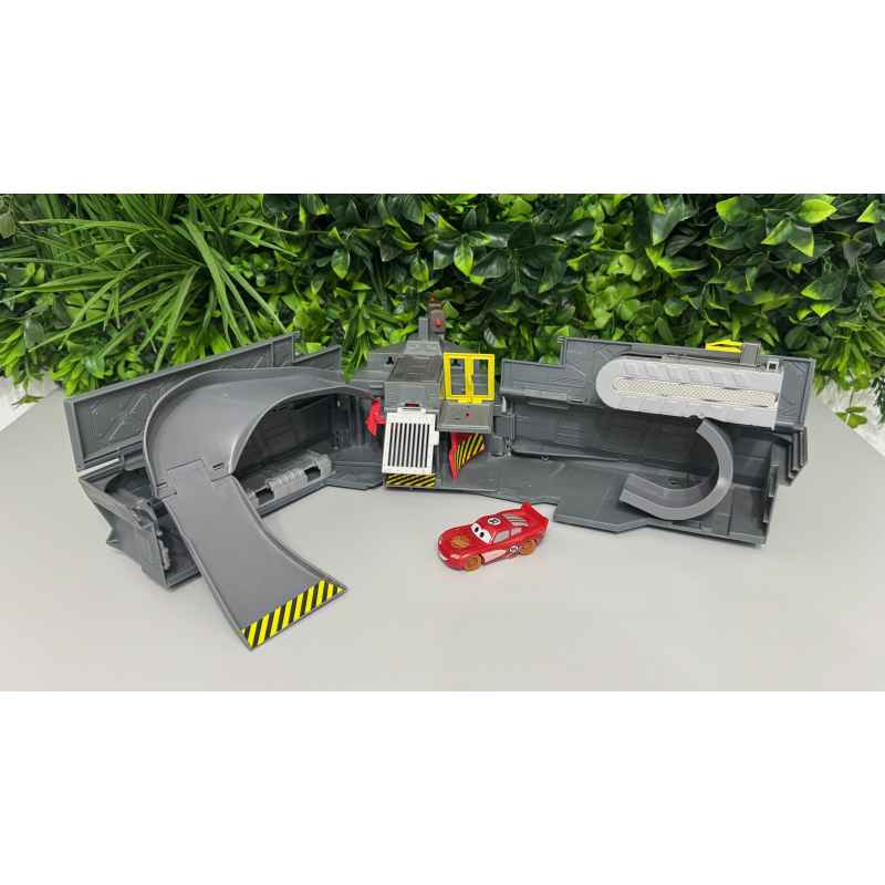 base de combat cars 2 qui s'ouvre avec à l'intérieur pistes et parcours, missile, et un véhicule, le tout en bon état